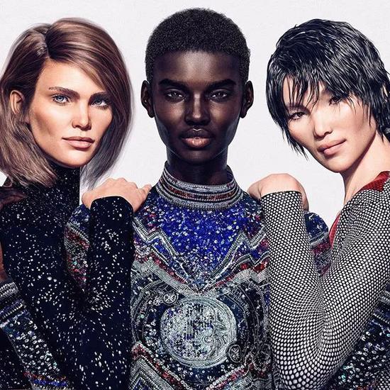 Shudu更是被多家时尚品牌看中。2018年9月,法国奢侈品品牌Balmain发布了自己品牌的最新广告。而广告的主角就是三位虚拟模特人物,这其中就包括Shudu。