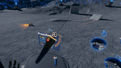 在体验中,开发者可以通过抓取和粉碎月球岩石体验力传感器,驱动一个遥控月球车来测试新的摇杆以及体验一些自然投掷的感觉。